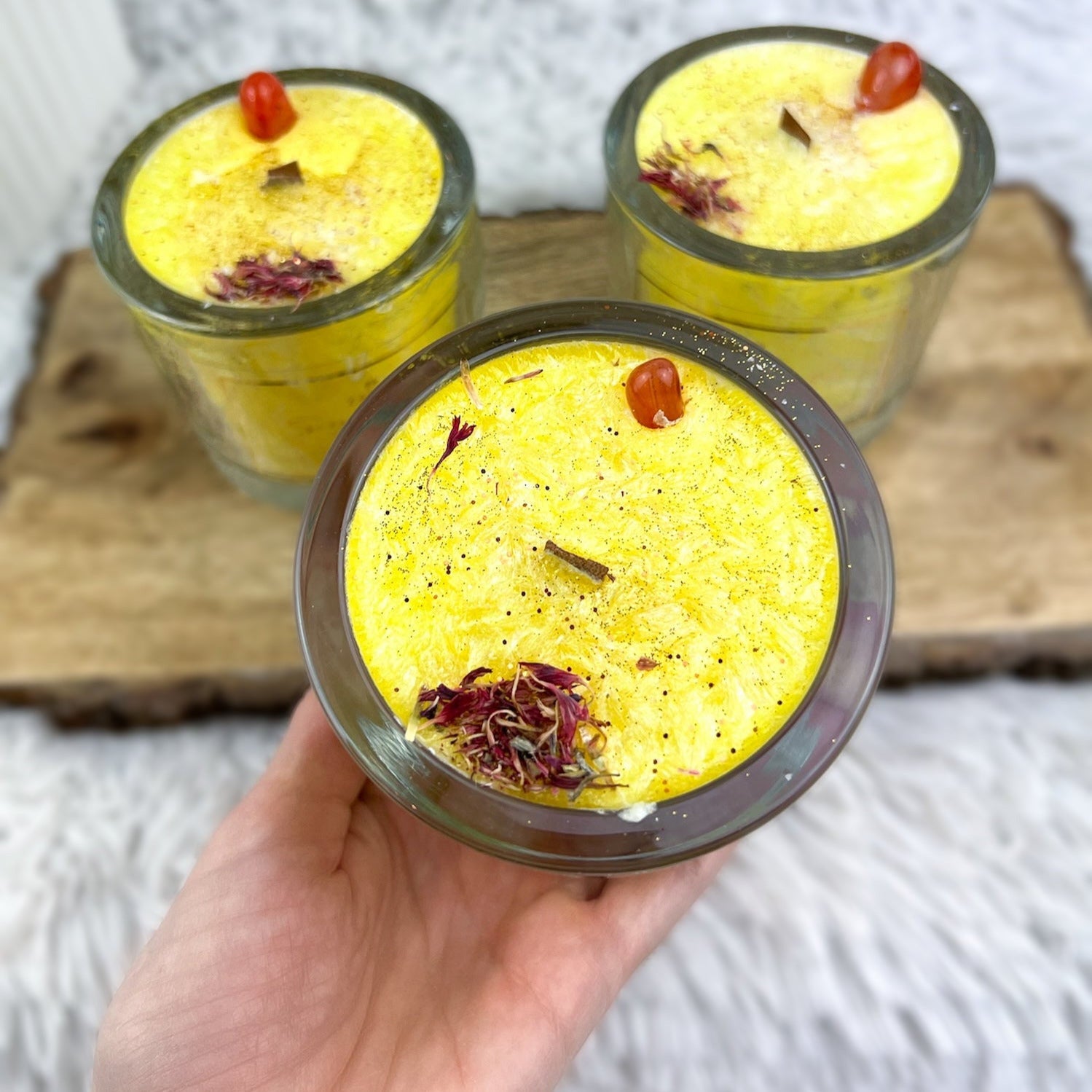 Beim Entzünden dieser Kerze darfst du deine Intention leise oder laut aussprechen – wie ein Gebet oder eine Affirmation. Mit jedem Flackern des Lichts erinnert sie dich daran, dass Freude und Wärme immer in dir wohnen.