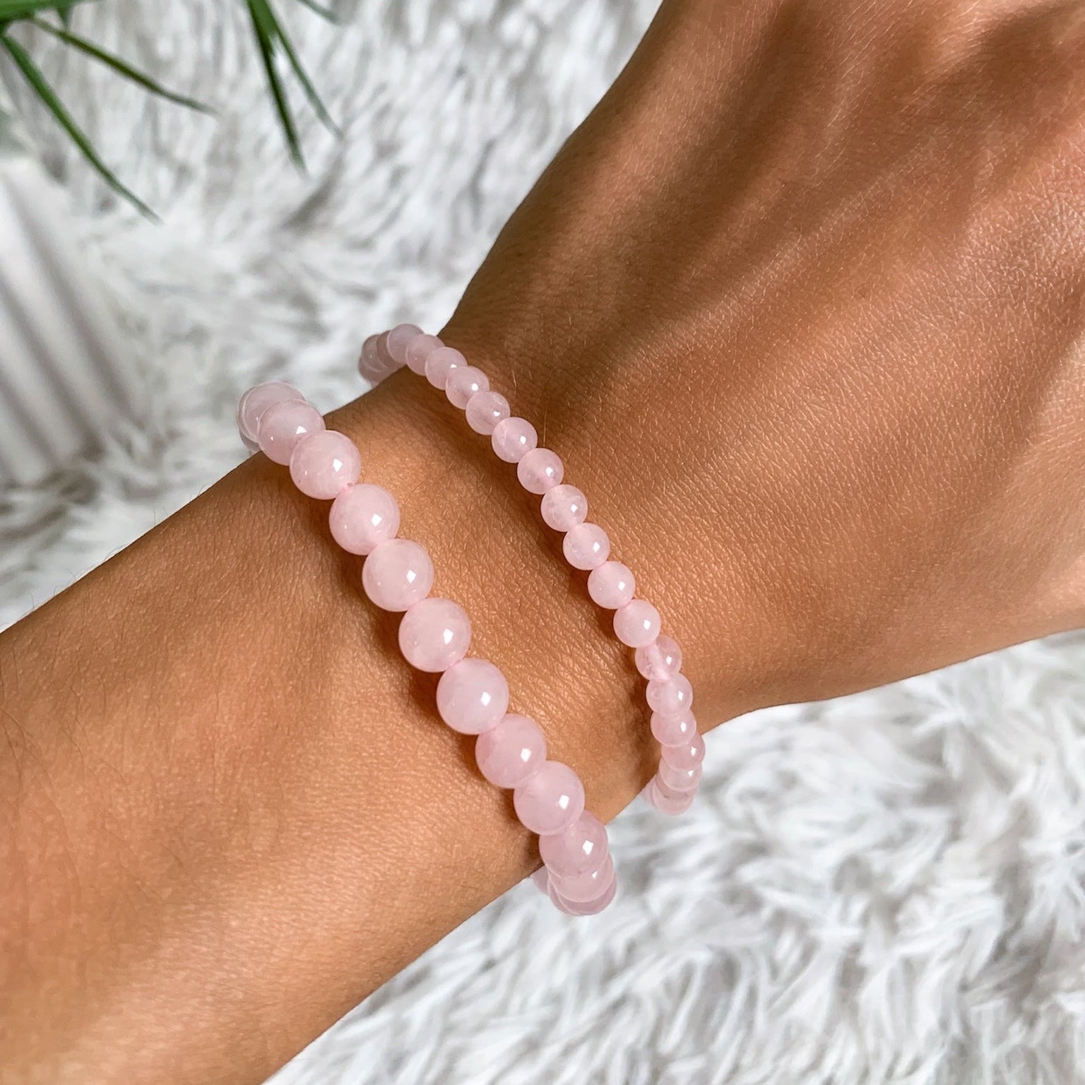 • Rosenquarz Armband (wahlweise 3–4 mm oder 6 mm Kugeln)