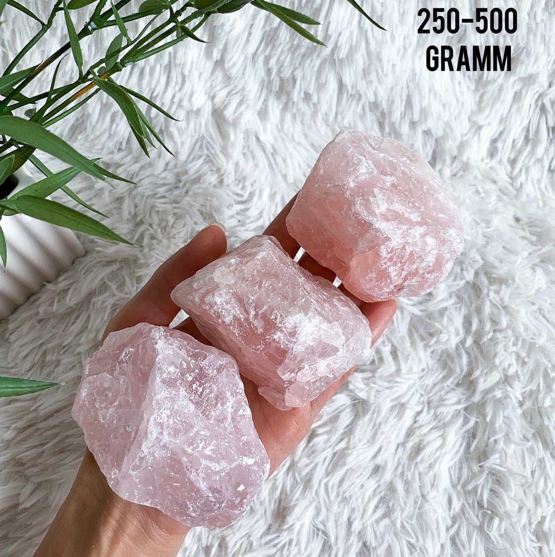 Unsere Rosenquarz-Kristalle gibt es in 4 verschiedenen Größen. Wähle einfach aus, welche am besten zu dir passt.